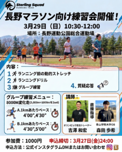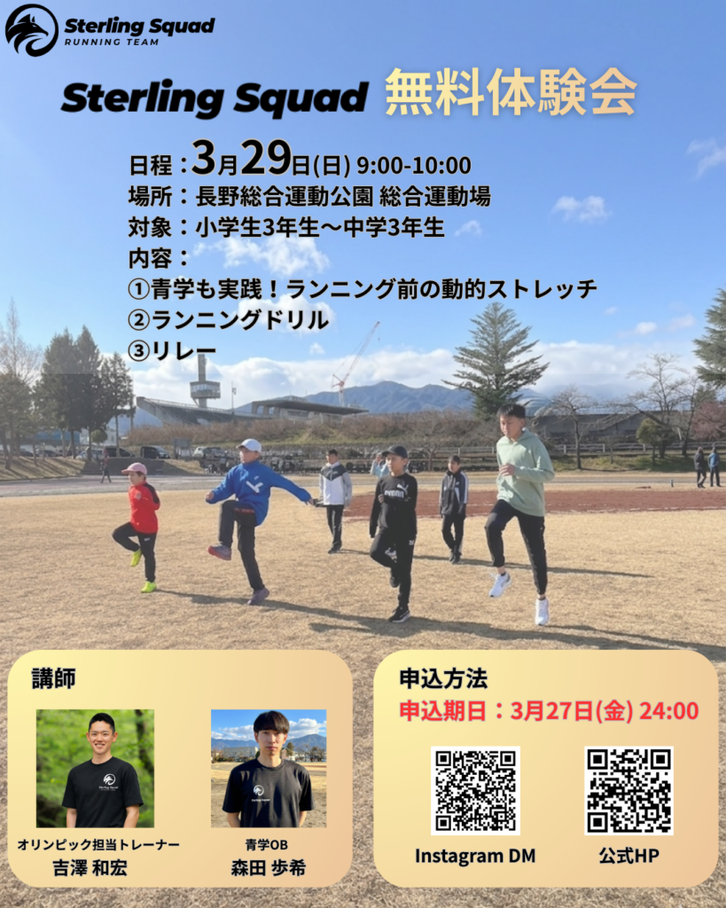 長野を拠点とする中長距離専門陸上クラブ「STERLING SQUAD」の無料体験会を開催します!